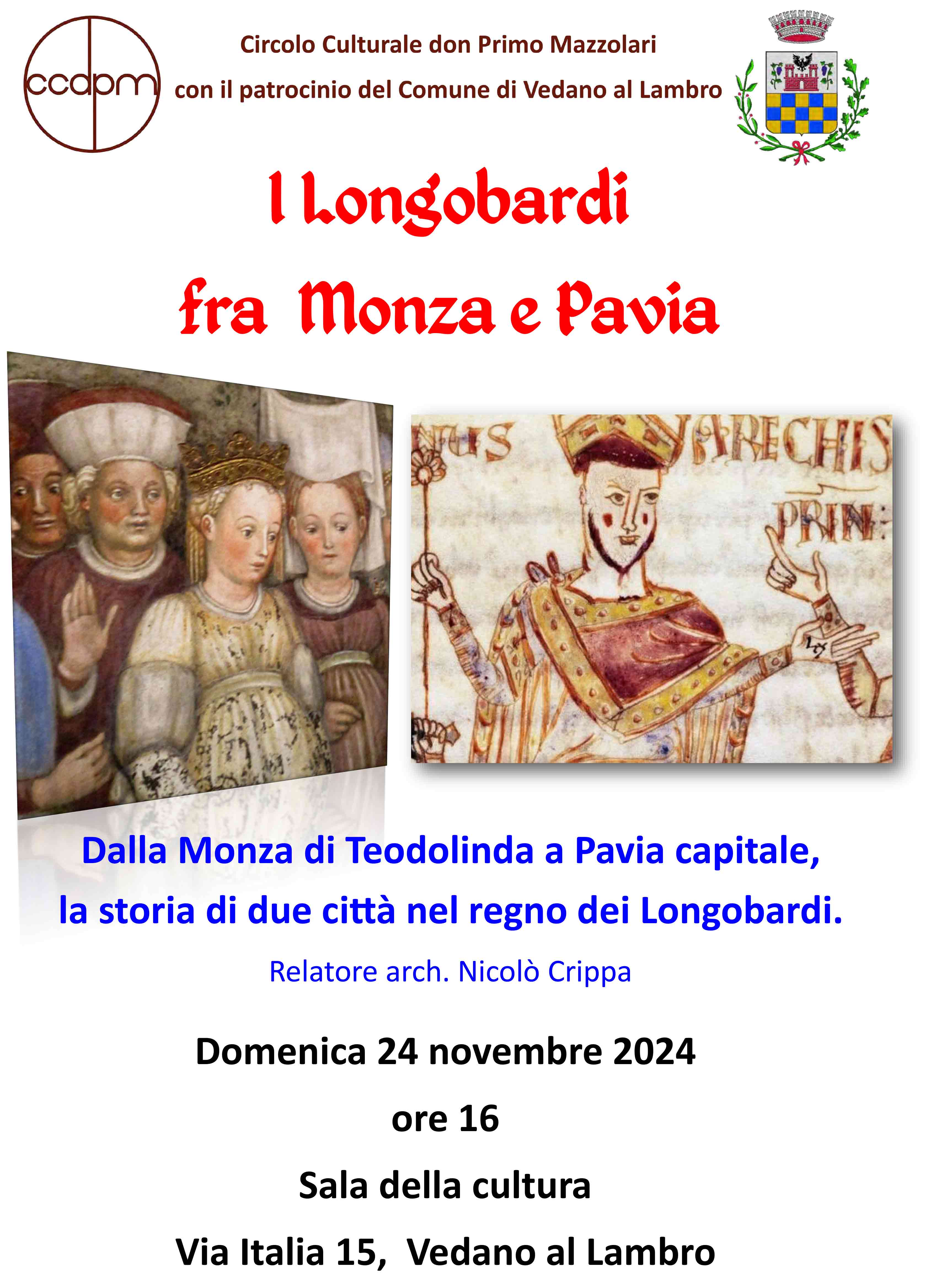 Dalla Monza di Teodolinda a Pavia capitale, la storia di due città nel regno dei Longobardi. Relatore arch. Nicolò Crippa